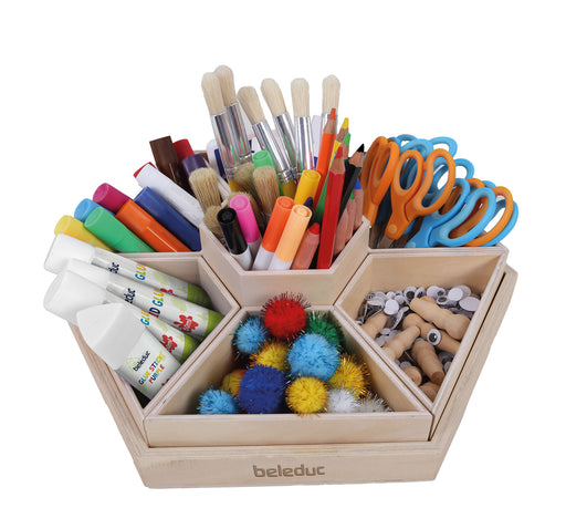 Vollständige Details anzeigenDer sechseckige Materialständer bringt Ordnung ins Gruppenzimmer jeder Kita und in jedes Kinderzimmer. Die Fächer sind herausnehmbar und eignen sic...