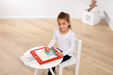 Mit dem Magnetspiel lassen sich tolle Bilder erschaffen. Die bunten Steine lassen sich mit dem magnetischen Stift anziehen und in die Vertiefungen legen. Dadurch können kreative Kunstwerke erstellt werden. Tier, Autos und vieles mehr werden „kunterbunt“ zusammengestellt. Es kann hier nach Vorlage gearbeitet werden oder ganz frei nach der eigenen Fantasie und Kreativität.